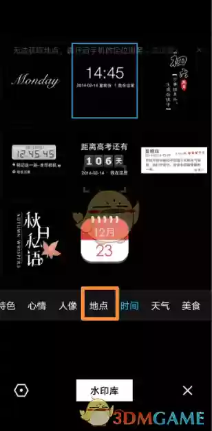 2、在弹出的水印库中,选择"地点"分类的水印模板。