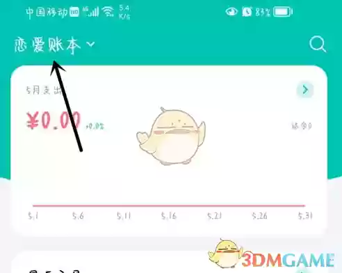 1. 在薄荷记账首页的左上角,点击当前的账本名称。