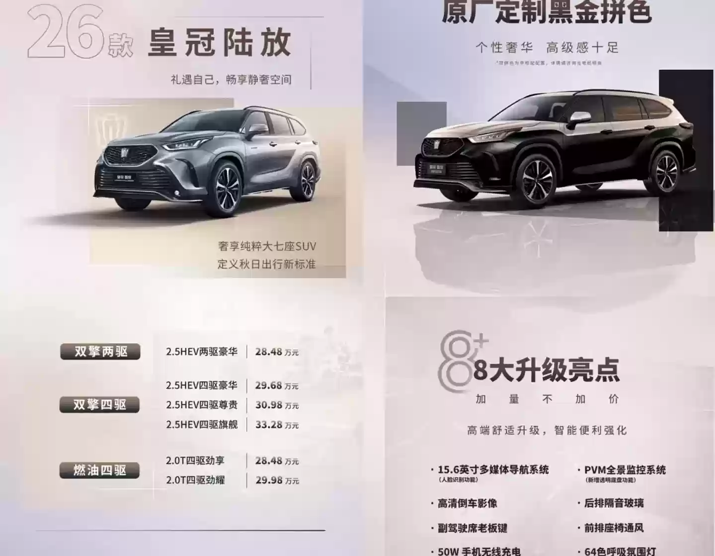 2026款皇冠陆放配置升级,中型SUV动力多样如何选