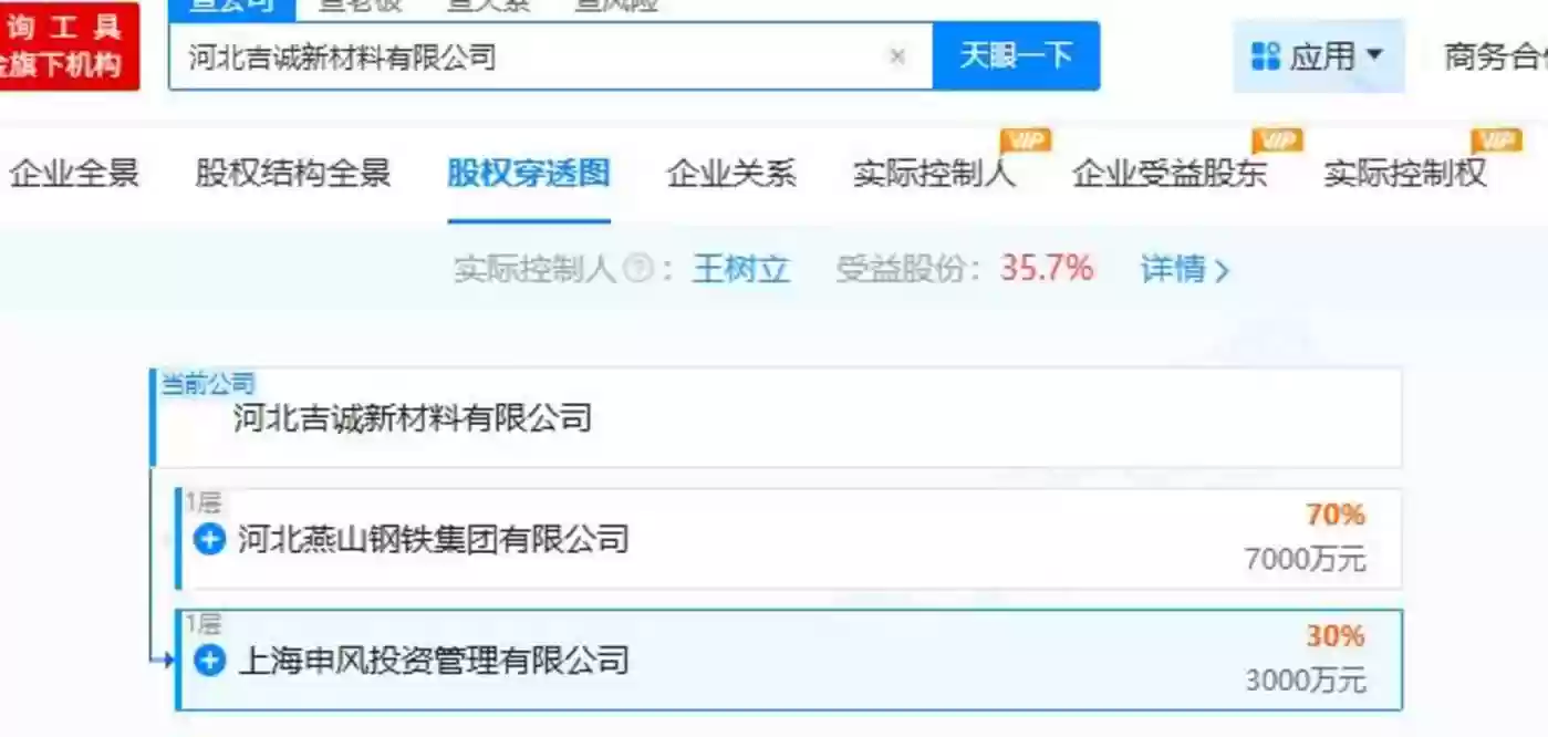 天眼查资料显示,河北吉诚新材料公司为河北燕钢控股70%的子公司。