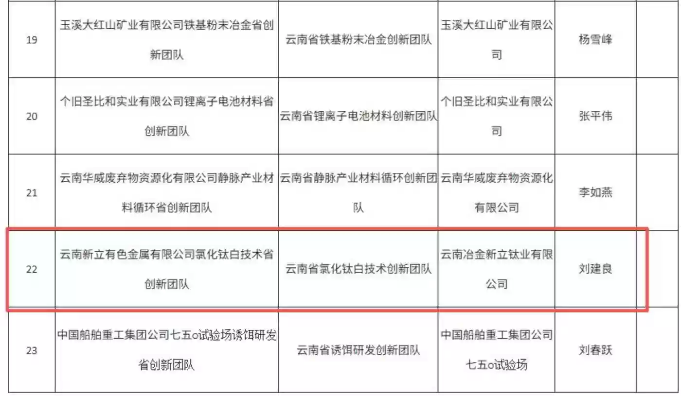 值得注意的是,本案被告之一的刘建良,曾担任云南新立董事长,同时也是公司氯化钛白技术创新团队的负责人,他带领团队曾被认定为"云南省创新团队"。