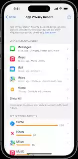 接下来,你会看到一个简洁明了的界面。“App隐私报告”按时间顺序展示了近期各类应用对隐私数据的访问活动。报告通过直观的图表和列表形式呈现,让你对数据使用情况一目了然。