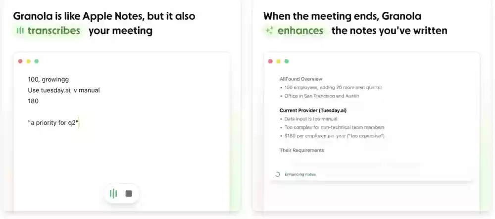 这款产品最显著的特质在于:会议期间不干扰交流,会后却能立即提供个性化的深度洞察。这种极简、克制且透明的产品哲学,正是Granola区别于同类产品的核心特征。