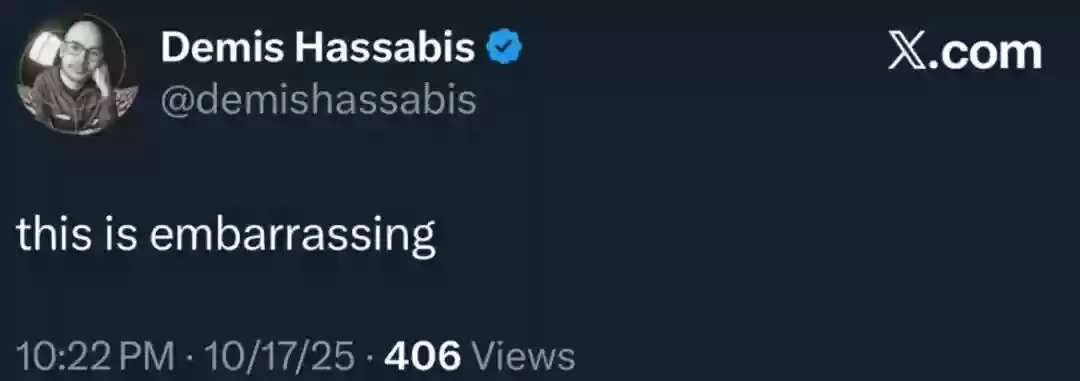 谷歌DeepMind的CEO Demis Hassabis在Sebastien Bubeck那条「AI加速科学」的推文下回复道:这很尴尬。