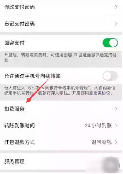 首先请进入支付管理页面,找到并点击页面中的"扣费服务"选项。