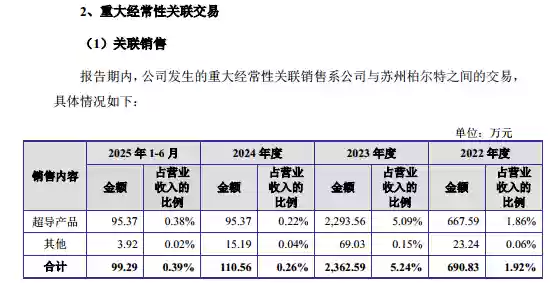 此外,健信超导还存在较多关联交易的情况,其中关于重大经常性的关联销售情况如下: