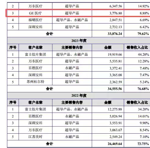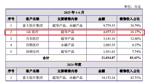 也就是说,健信超导并未将公司与GE医疗之间的交易列入关联交易范畴。一方面,GE医疗通过下属公司通用电气(杭州)间接持有健信超导3.1%的股权,具有股东身份;另一方面,GE医疗还是健信超导的竞争对手与重要客户。自2024年起,GE医疗便成为公司前五大客户,且交易额呈现快速上涨态势。基于这两层关系,为何GE医疗未被认定为关联方,双方交易为何未按关联交易规范进行披露,这些都需要公司作出进一步解释。(文 | 公司观察,作者 | 邓皓天,编辑 | 曹骥源)
