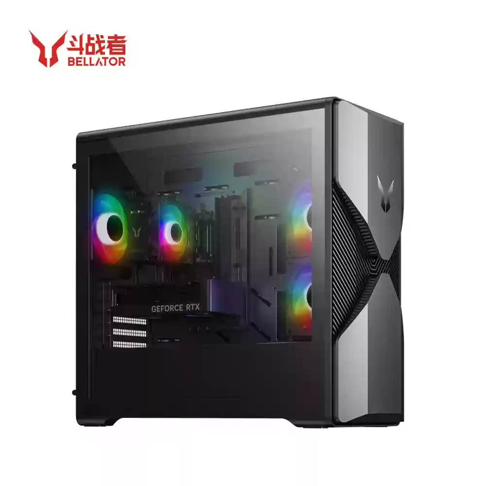 散热方面,斗战者锋7000采用了“高效多分区飓风散热架构”。该架构旨在形成高效的风冷散热循环,确保主机在高负载下也能稳定运行,不会因过热而导致性能降频。同时,这种散热方案还支持用户自行加装水冷系统。机箱内部还配备了支持RGB灯效的散热风扇,在保证散热效率的同时,也为玩家营造出个性化的电竞氛围。整机搭载了额定功率500W的电源,为i5-13400F+RTX5060的高性能组合提供了稳定可靠的能源供给。