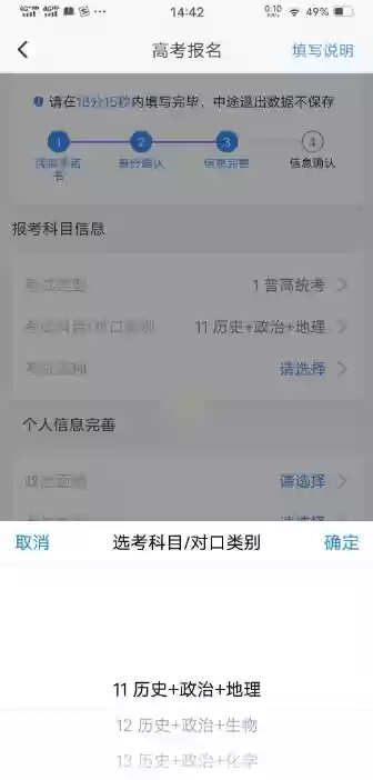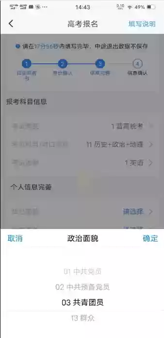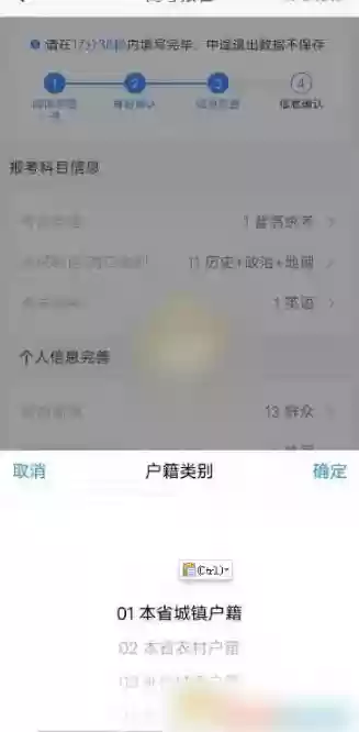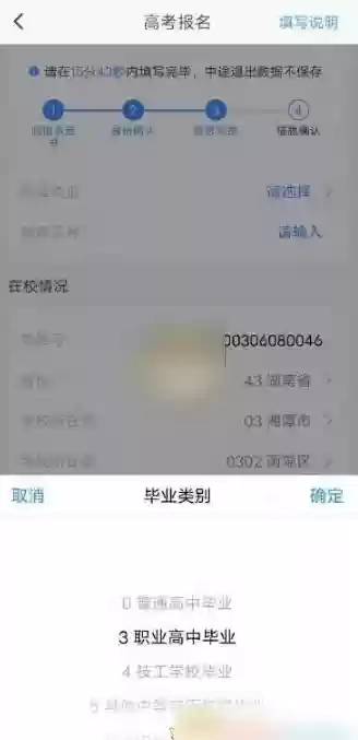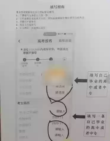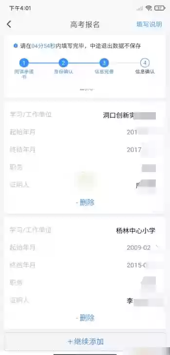 第十四步:考生简历部分需填写真实有效的高中就读信息,包括学校名称、入学时间、毕业时间、职务填写“学生”、证明人填写班主任姓名(按高中、初中、小学顺序依次填写)