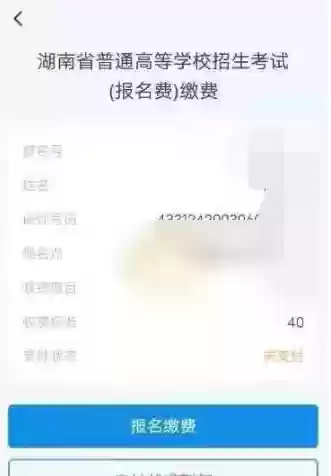 第四步:进入“湖南普高考试缴费系统”,核实信息无误后点击“报名缴费”