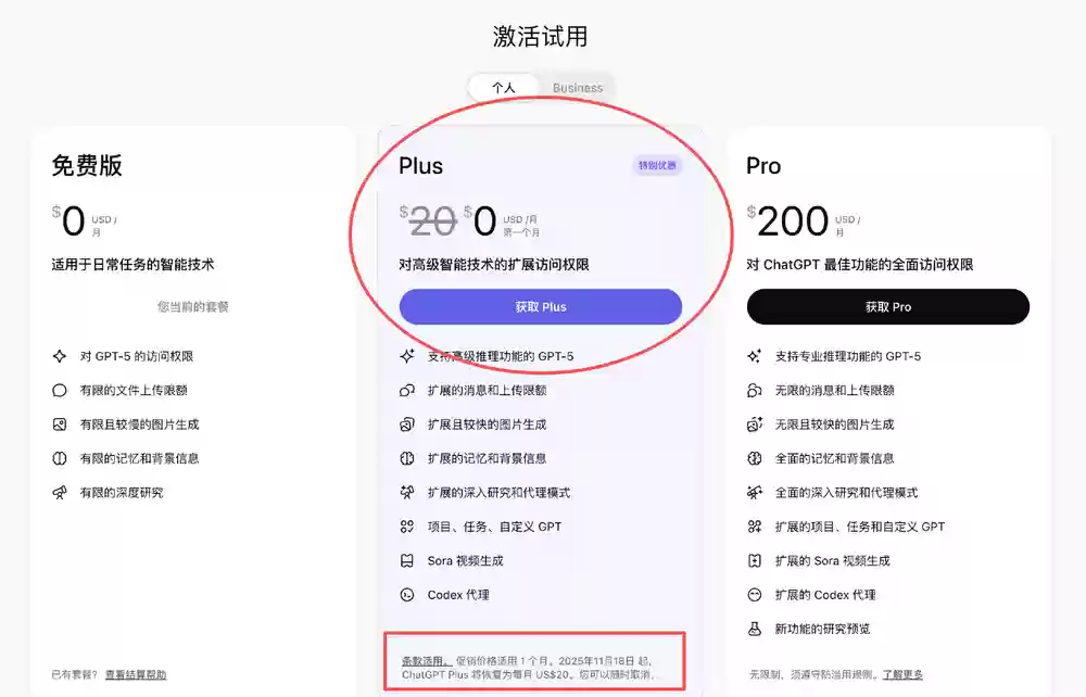 今天打开ChatGPT,会发现它已效仿苹果推出免费试用。在"让所有人受益,推动AI技术的普及和应用"的表象之下,是奥特曼卯足了劲在赢得用户,留住用户。