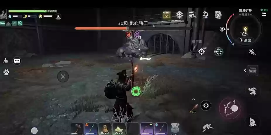 在与猪王进行后续战斗时,尽量拉开和Boss之间的距离,这样不仅可以更好地躲避技能,还能进行远程普攻。体力最好保留在能够翻滚三次的状态。在将猪王的血量打到只剩一半左右时,一定要注意它头上出现的图标,这时需要切换近战武器对头部进行按摩式打击,随后立即用翻滚技能拉开与猪王的距离,避免被它伤到。按照这个躲避节奏,大家慢慢消耗猪王的血量,将其击败后就可以去挖矿了。