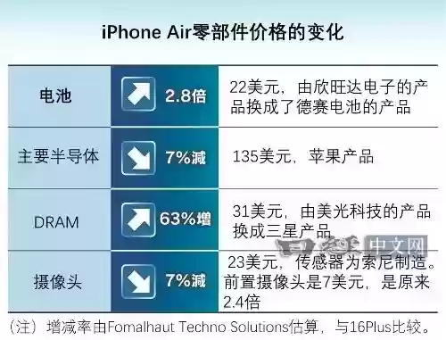 在改进了电池形状和材料之后,电池成本似乎也显著上升。据Fomalhaut推算,Air的电池成本约为22美元(约合3300日元),这达到了16 Plus电池成本的2.8倍。