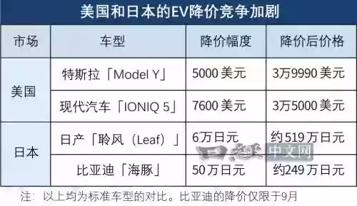 特斯拉在美国将其主力车型的最低价位下调了一成,这一举措对整个电动车市场产生了涟漪效应。即便在电动汽车普及率垫底的日本,日产主力电动车LEAF(中文名:聆风)的建议零售价也降低了约6万日元。加剧这股降价压力的,是比亚迪等中国企业的强势入场……