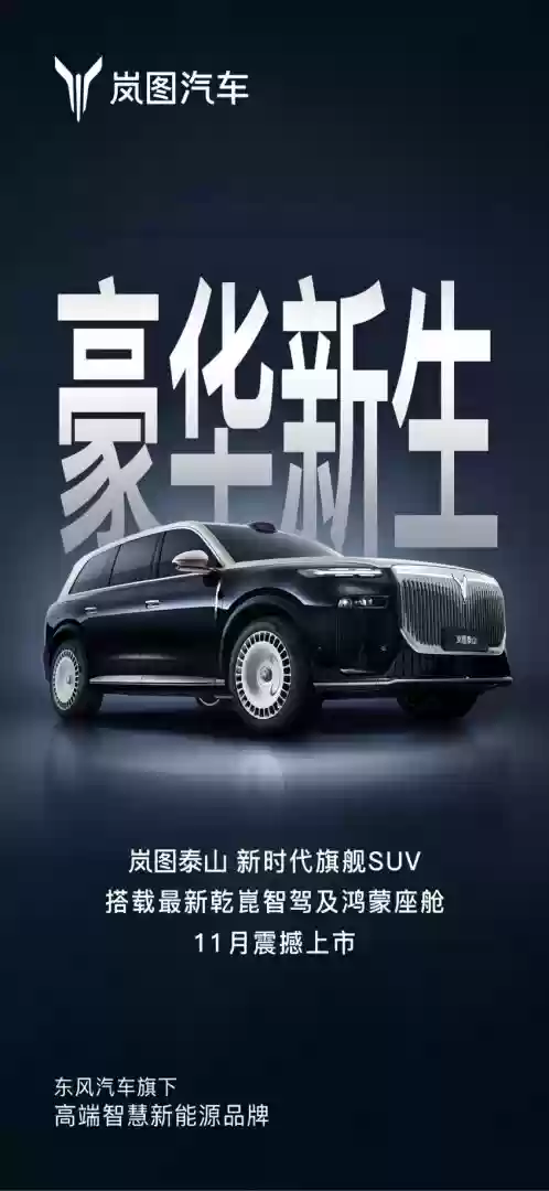 岚图追光11月上市:搭载华为智驾与鸿蒙座舱,豪华SUV再升级