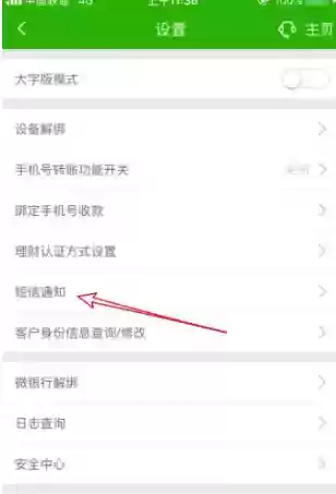 进入设置页面后,您会看到短信通知功能选项,请直接点击该项进入