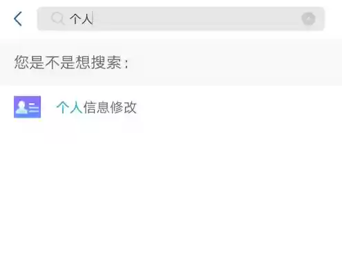 在搜索框中输入"个人信息修改"关键词,然后点击进入对应的功能页面。