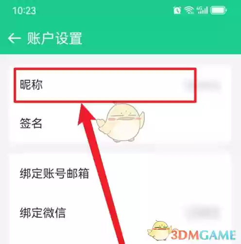 3、在账户设置页面中,找到并点击【昵称】一栏。