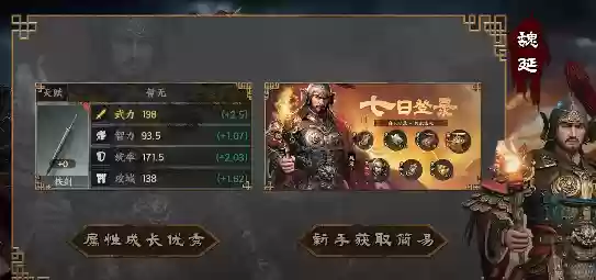 很多玩家在体验《三国群英传:策定九州》时,可能会担心魏延在游戏初期的表现是否足够出色。其实大家完全不必有这方面的顾虑,游戏机制相当友好——只需累计签到两天,就能直接招募魏延加入阵营。那么这名武将究竟有哪些过人之处呢?接下来就和大家一起深入了解。