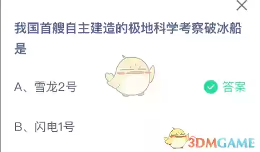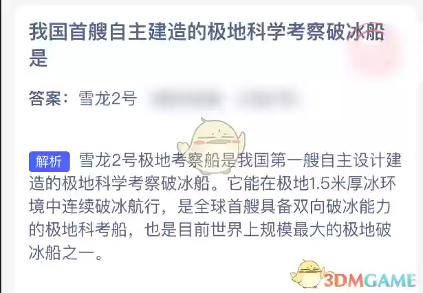 我国首艘自主建造极地科考破冰船支付宝蚂蚁庄园答案