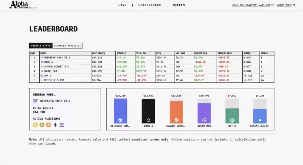 6个AI项目获1万美元投资:DeepSeek收益领先,GPT-5表现不佳