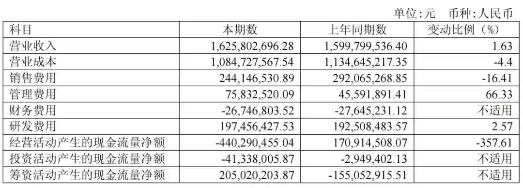 不过,公司的现金流却吃紧。财报显示,去年年末现金流净额还有1亿元以上,今年半年度报告期末净额则约为-4.4亿元。