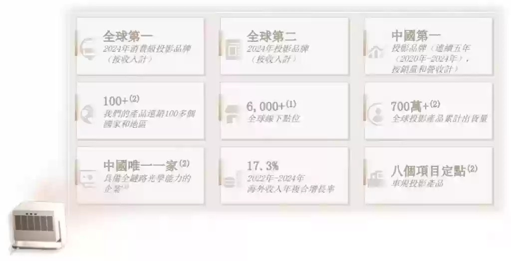 此外,极米还在构建第三增长引擎——出海。据行业研报分析,全球投影仪市场规模预计从2025年的123.9亿美元涨到2030年的162.7亿美元,年增长率为5.6%。当前中国企业在赛道上优势明显,全球约75%的投影仪由中国生产。
