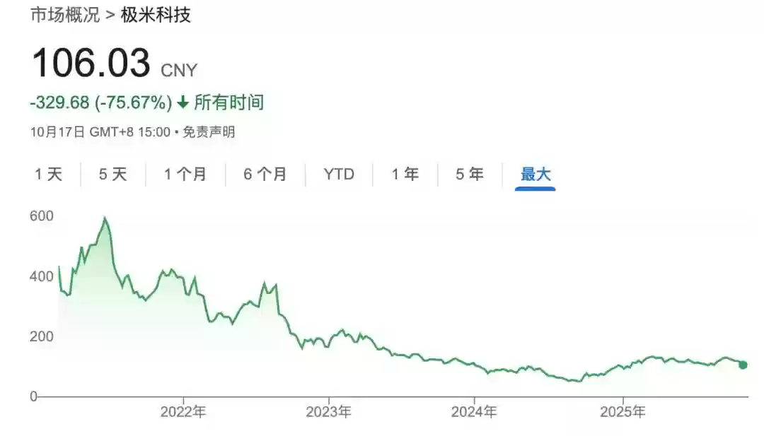 另一方面的关注来自资本侧。2024年3月,极米科技在上交所科创板上市,上市首日股价暴涨296%,股价高峰时其市值冲到了430亿元;而如今,极米科技的市值蒸发超过80%,截至10月18日,极米科技在A股科创板的市值约为76.44亿元。