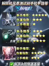 对于初次踏入《解限机》的新手玩家来说,挑选一台合适的机甲至关重要。以下是几款值得推荐的机型,它们将在你探索机甲世界的初期提供可靠的助力。