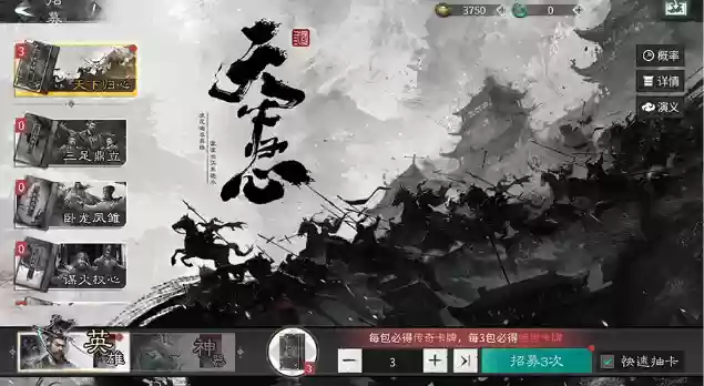 想在《三国:天下归心》中组建强大的国家队?很多玩家在初入游戏时,角色储备有限,往往需要寻找一套性价比高的组合。通过观察众多玩家实战中常用的武将,我们总结了一套适合开荒的国家队搭配方案。尽管组建强力国家队的核心在于武将强度,但不可否认的是,游戏里越是强力的角色获取难度也越高。