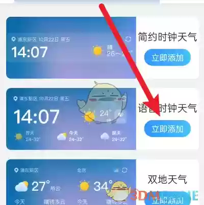 4、在这里就可以直接添加语音时钟天气功能了。