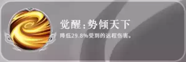 他的主动技能"如岚遗风"需要在回合结束后才能使用,其中有66%概率能给敌方一个目标附加嘲讽状态。如果想打控制流,这个嘲讽技能在开局阶段就能用在敌人身上。另一个觉醒技能"势倾天下"效果非常直接,就是降低袁绍受到的远程伤害,减伤幅度达到了29.8%。