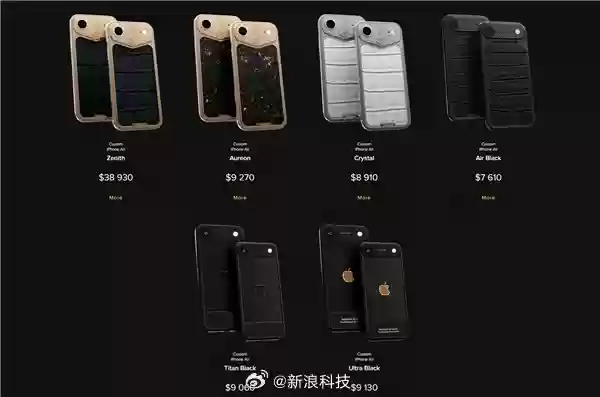 在定价策略上,AirLine系列呈现显著梯度。基础款机型定价7610美元(约合人民币5.4万元),而顶配版本iPhone Air Zenith售价高达38930美元(约合人民币27.7万元)。作为系列旗舰,Zenith版全球仅限量3台,其机身顶部与中框采用24K黄金锻造,后盖覆盖黑色鳄鱼皮纹路,镜头区域镶嵌18K金Caviar王冠标志,将奢华细节推向全新高度。