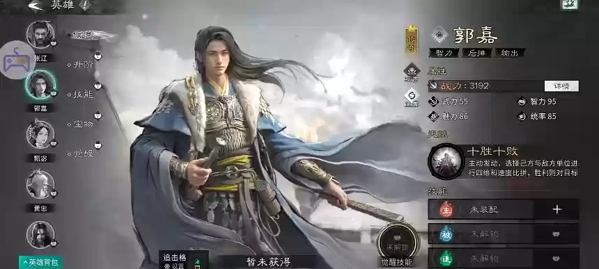 而搭配的另一位武将郭嘉,则具有一定的谋略加成。他本身定位就是谋士,天赋效果在智力方面具有压制性作用。他带来的稳定输出效果也比较强劲,而且还有足够的支援能力。这两个角色组成的队伍比较全能,所以一文一武相对应才叫文武制衡队。其中一个文将,一个是武将,带来的效果比较平衡。这个阵容在站位上大家一定要注意,因为整体的破防效果是吕布专属的队伍固有特效,所以这里的吕布追击格就要牺牲掉。