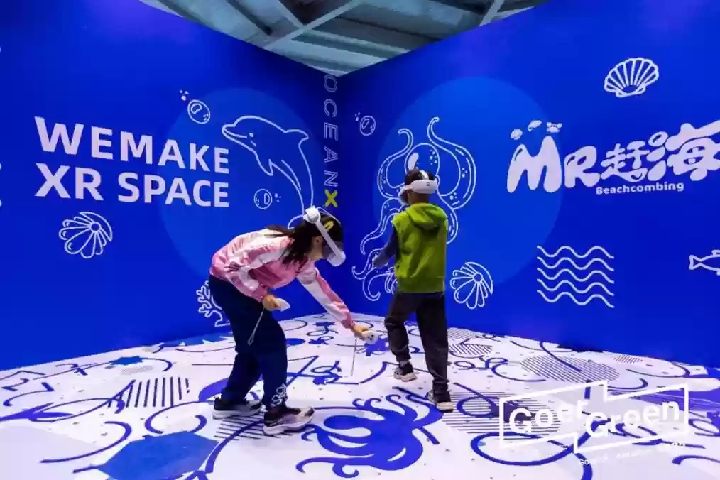 (市民在歌尔展区MR大空间体验沉浸式赶海)
