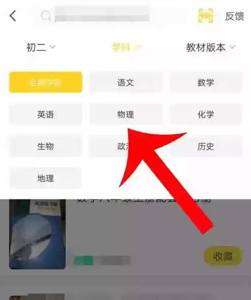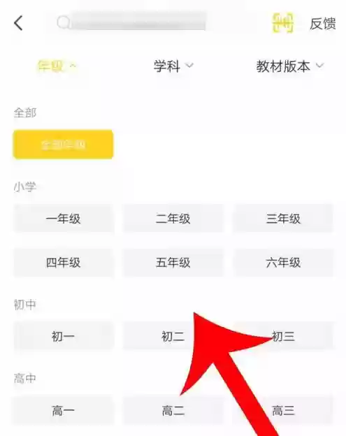 点击搜索栏进入新页面后,若对教材具体信息不太确定,可以通过分级筛选功能,依次选择年级、学科和教材版本来缩小搜索范围