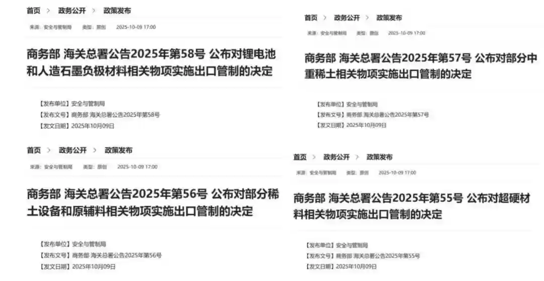 其实早在今年4月,已有7类中重稀土相关物项实施出口管制措施,而10月9日,针对稀土的出口管制措施进一步升级。