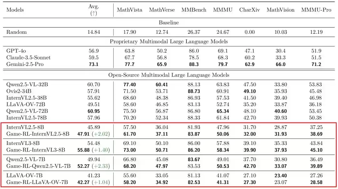 核心发现:Game-RL显著提升视觉语言模型的通用推理能力