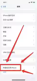 在设置界面中,向下滑动找到“通用”选项并点击进入。进入通用页面后,继续滑动至底部,找到“传输或还原iPhone”这一选项。