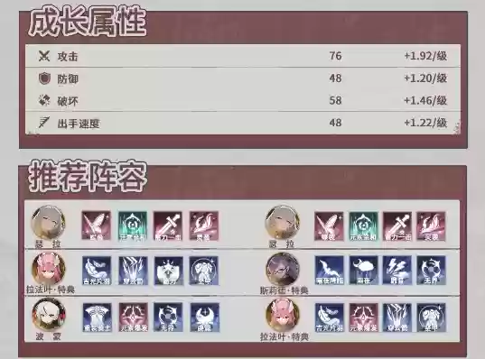 成长属性与推荐阵容: