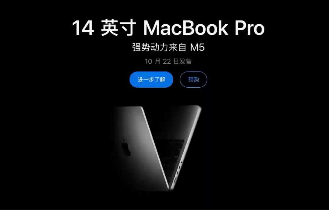 苹果14英寸MacBook Pro首搭M5芯片开售:AI性能双升级