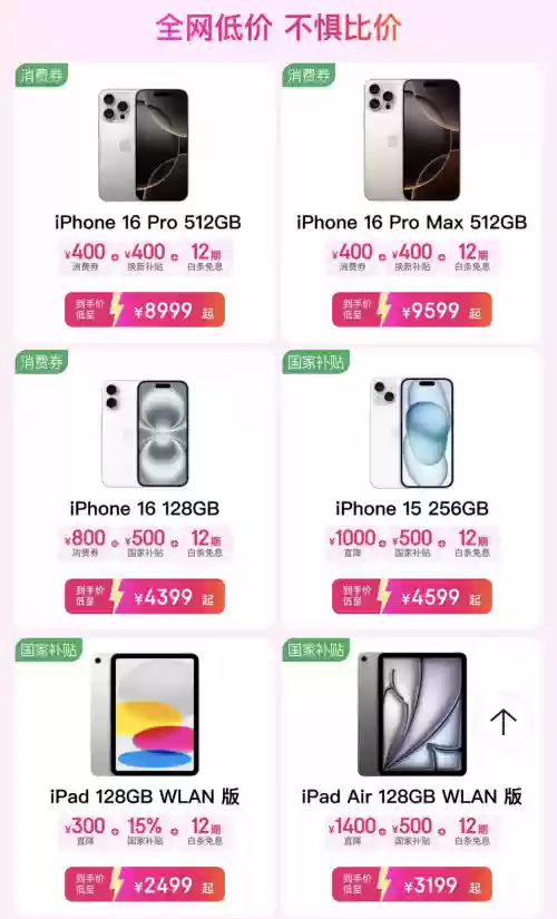 如果没抢到iPhone 17也不用担心,京东11.11同样把iPhone 16系列的价格降下来了。iPhone 16国家补贴后到手价低至4399元起;iPhone 16 Pro 512G版到手8999元,iPhone 16 Pro Max 512G版到手仅需9599元;iPhone 15国家补贴后到手价低至3399元起。