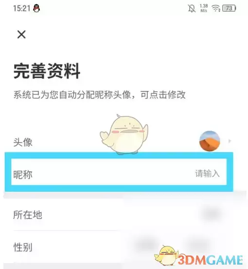 3、接下来会进入资料编辑页面,在此输入您的新昵称,最后点击完成按钮保存设置。