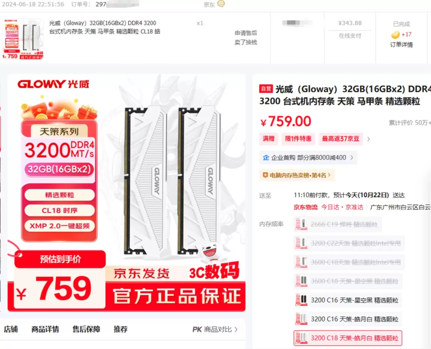 这轮涨价究竟有多夸张?举个具体例子,小雷去年618期间购入一对16G的DDR4 3200内存条,当时优惠后的价格是343元。而一年后的今天,即便在双十一促销期间,同规格内存价格已飙升至759元,直接翻了一倍有余。