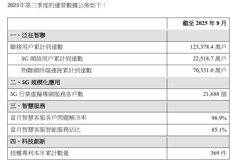 公告数据显示,截至2025年三季度末,中国联通在"大联接"领域持续扩大用户规模:移动用户总数达3.56亿户,净增1,248万户;固网宽带用户达1.29亿户,净增679万户,宽带用户净增规模创下近年同期新高;物联网总连接数突破7亿大关,产业数字化业务保持强劲发展势头。