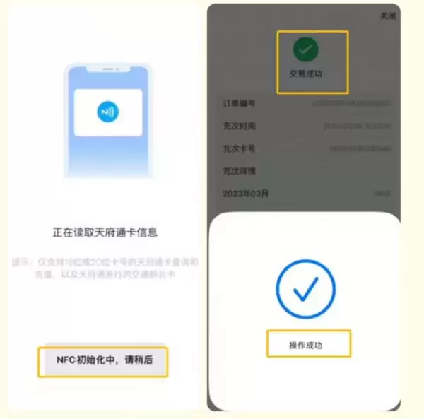 9. 请将老年卡重新贴近手机NFC感应区(通常位于手机背面上半部分),贴卡后请保持卡片静止,等待系统完成充次操作