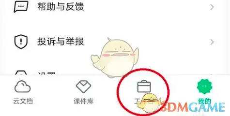1. 打开手机端的希沃白板应用程序,进入主界面后点击底部菜单栏的"工作台"选项,即可进入课件管理界面。