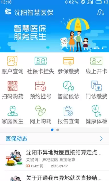首先打开"沈阳智慧医保"应用,完成账号注册和个人信息绑定后,即可进入主页面。