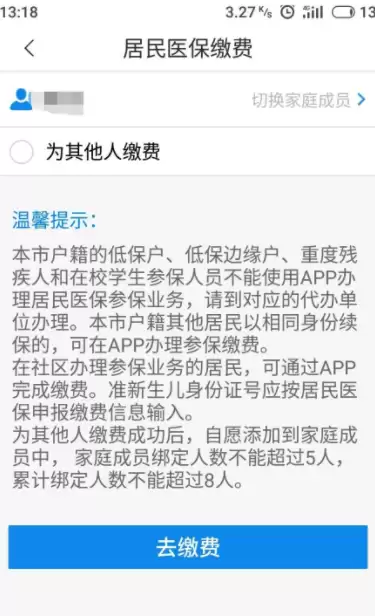 系统支持为家庭成员代缴费用,值得注意的是,低保户和学生群体仍需前往社区办理缴费手续。