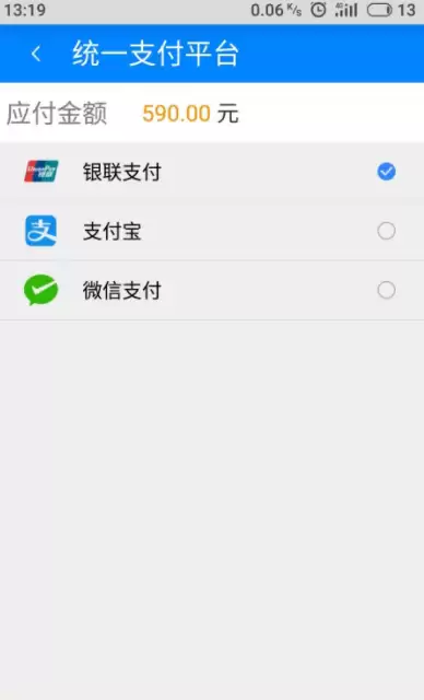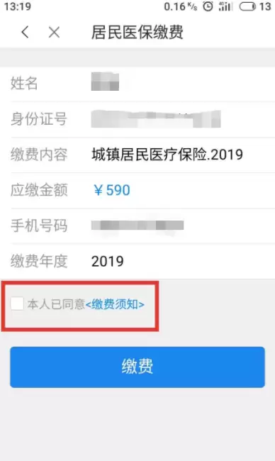 选择2019年度缴费,应缴金额为590元,系统提供三种便捷支付方式供您选择。